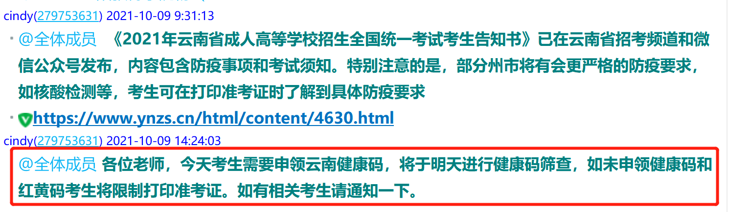 .“云南健康码”为黄码显示来自国内有中风险地区的城市的考生,需提供考试前3天内有效的新冠病毒核酸检测阴性检测报告原件或打印的“健康码”新冠病毒核酸检测阴性信息。